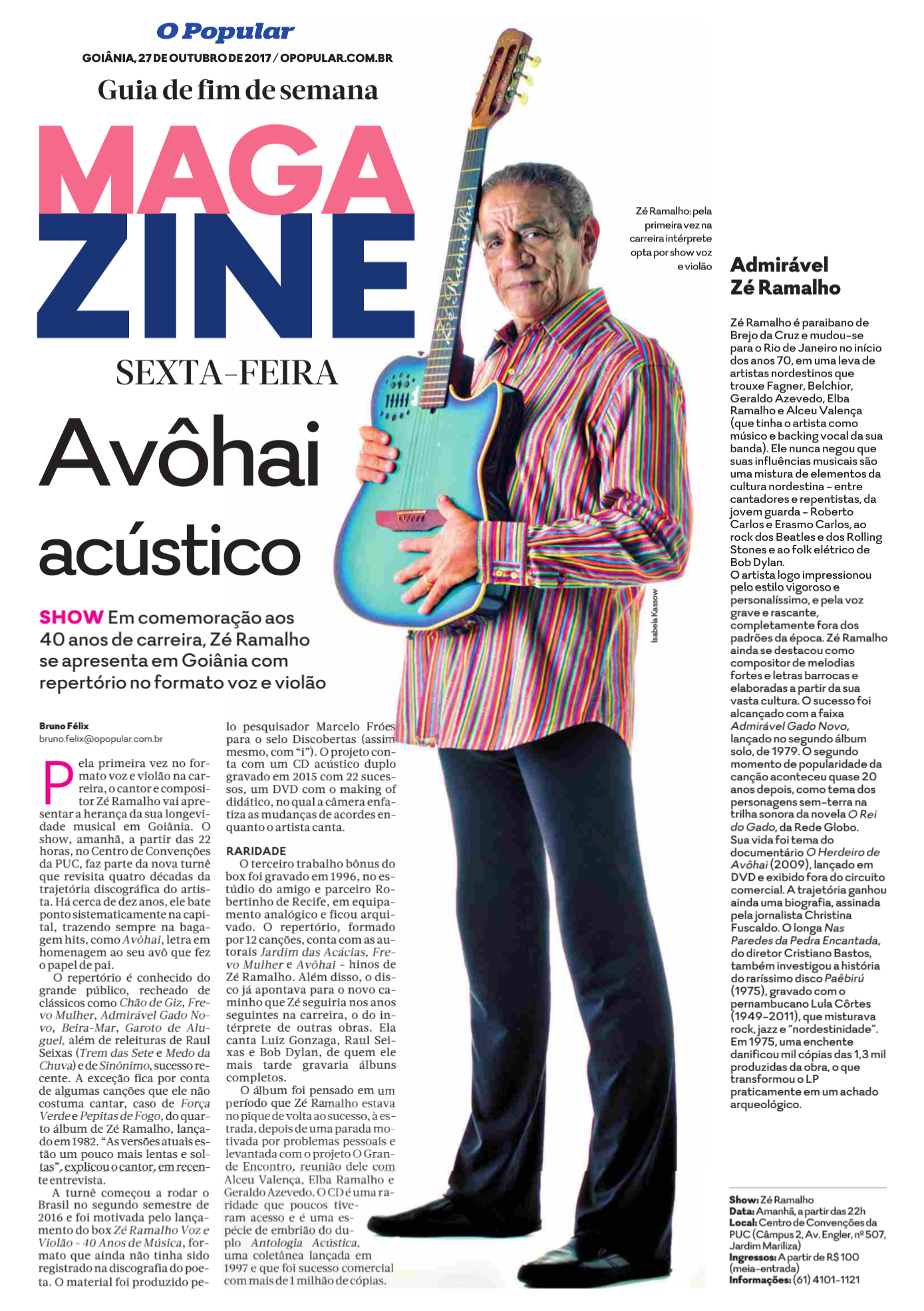 O popular: MagazineZé Ramalho foi destaque no caderno Magazine do O Popular. A assessoria de imprensa é da Fabrica de Notícias.